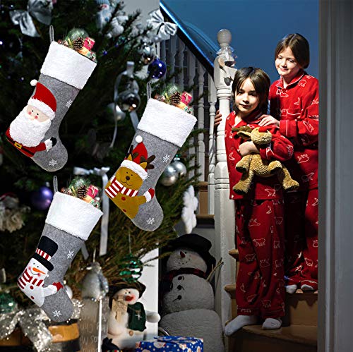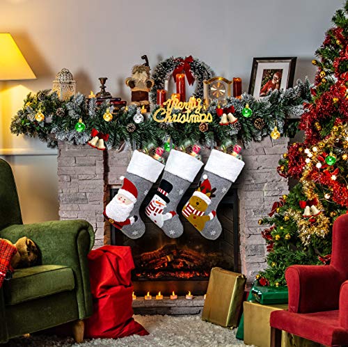 18″ Big Plush Christmas Stocking Set of 3 with Xmas Character Santa, Snowman, Reindeer