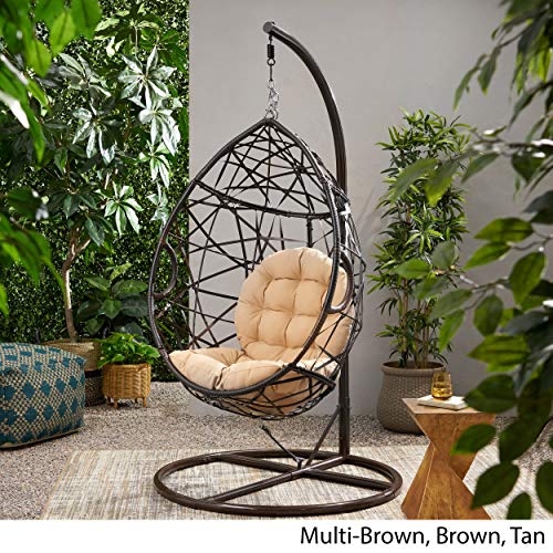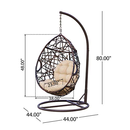 This Christopher Knight Home hanging basket Swing Chair adds a fun lounge vibe to your Out of doors space | Constructed with durable black-brown faux wicker and a sturdy iron frame, it’s easy to maintain and built to last