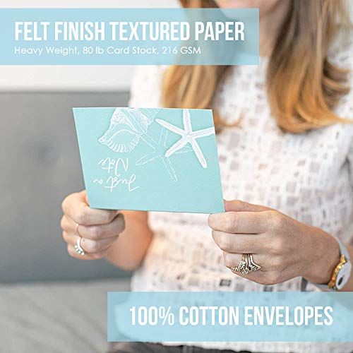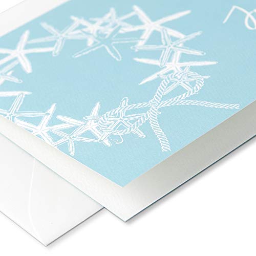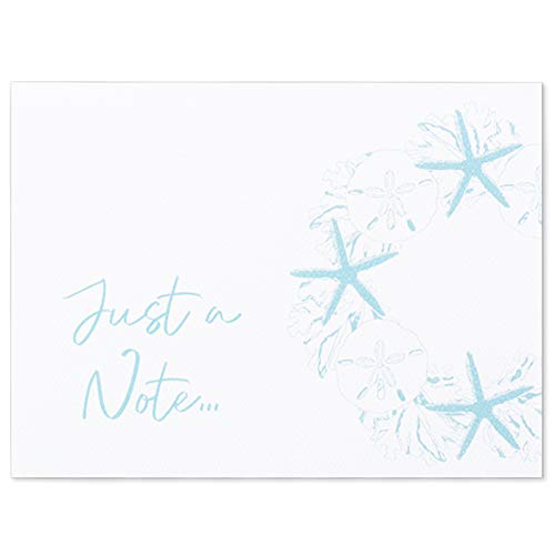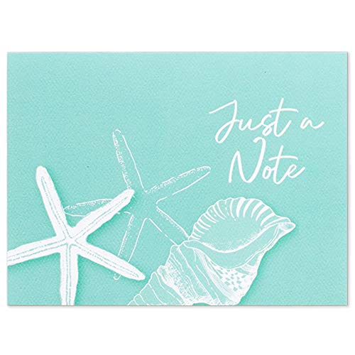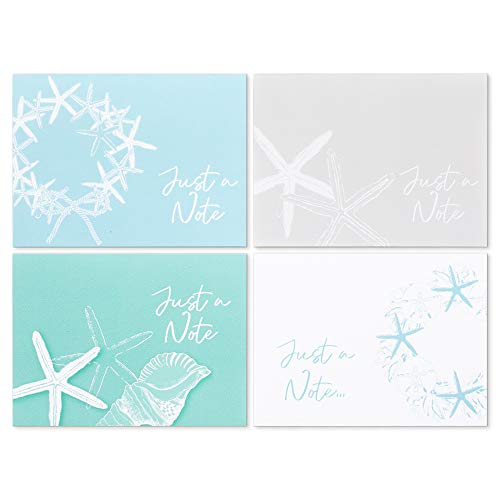 Clearstory Coastal Themed Just A Note Cards With Envelopes, Pack Of 12 Note Cards With Seashells And Starfish Designs Printed On Blue, Green And Gray Textured Paper, (Size A6 6.25×4.635 Inches Every; 4 Designs x 3) Hand Made In America