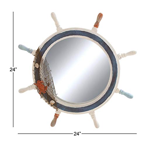 Coastal 24 Inch Blue And White Ship’s Wheel Wall Mirror By – Multi Nautical