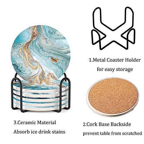 【Cork Base】:Soft Cork Backing design prevent table from worn and scratched,Ceramic material with marble and gold glitter pattern printed.