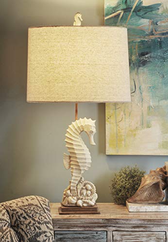 Complete your costal oasis with this poly table lamp. The seahorse design is perfect if you wish to add some fun to your abode, at the same time as the beige and ivory finish bring a sense of calm to the design. Be a focus for your guests by placing this lamp in your entryway or guest room. This lamp features a rotary 3-way switch on the neck of the lamp This item is rated for dry locations, meaning it may be used in an indoor area that may be not generally subject to dampness. May include a location subject to temporary dampness provided ventilation is adequate to prevent any accumulation of moisture such as the toilet This product is manufactured in China