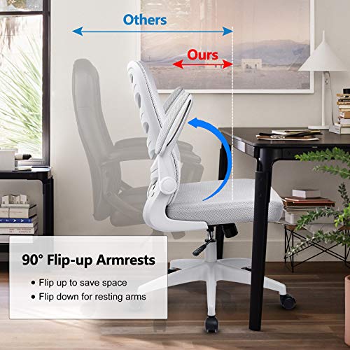 Flip up Armrests: The office chair comes with adjustable armrests which can be flipped up or down. It can fit nicely under the desk and save space; or provide comfort when you feel like to rest your arms.