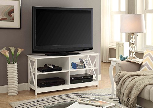 Optimize your display and storage space with the Oxford TV Stand by Convenience Concepts. With an open-concept design and cable management holes, you will be able to keep all your media and entertainment accessories within arm’s reach. Boasting a contemporary style, this furniture piece is ready to refresh your décor. Its unique X frame side design is the finishing touch to modernize any room in your home. Crafted from MDF and finished with a non-lead based paint, this open storage 5 shelf unit was built for longevity and is safe to be anywhere in your living space. This TV stand is available in multiple finishes to complement any home décor. Look for matching pieces from the Oxford Collection by Convenience Concepts. Each sold separately.