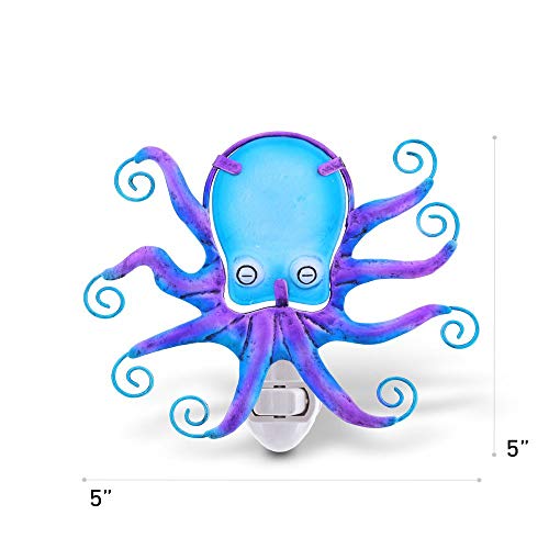 INCLUDED WITH THE PURCHASE OF THE OCTOPUS SMALL PLUG IN LIGHT – Includes 1 Octopus plug in night light with an easy power toggle switch on a narrow base that may not block all the outlet. Unique night light perfect for ocean life themed home, designed in the form of a purple octopus with soft blue accents. The rustic night light gives off a soft glow that will help you fall a sleep. The Octopus cute night light measures 4.75Lx1.2Wx4.6H inches.