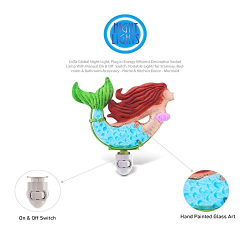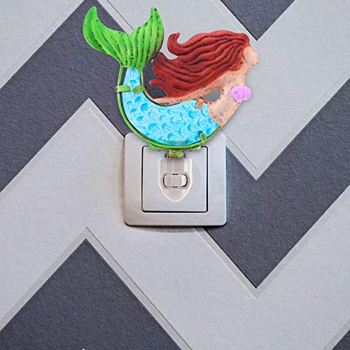 HIGH-QUALITY MERMAID NIGHT LIGHT WITH ON OFF SWITCH – The Mermaid manual plugin nightlight stays protected when plugged into a socket and made of high-quality, sturdy metal and glass. A highly functional and versatile decorative nightlight plugin to light your way at ease at night. Night light is hand crafted and painted by hand, artistic ornament for the hallway, kitchen, nursery or bedroom. Gives off a comfy glow to add nice ambient to the room.