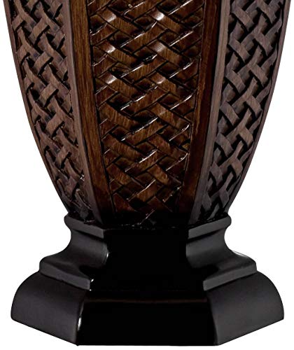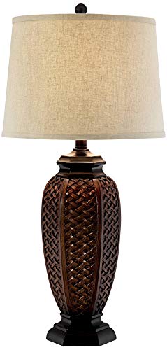 Regency Hill Country Cottage Tropical Style Table Lamp 29″ Tall Brown Woven Wicker Pattern Beige Linen Drum Shade Decor for Living Room Bedroom House Home Dining Office Reading Entryway