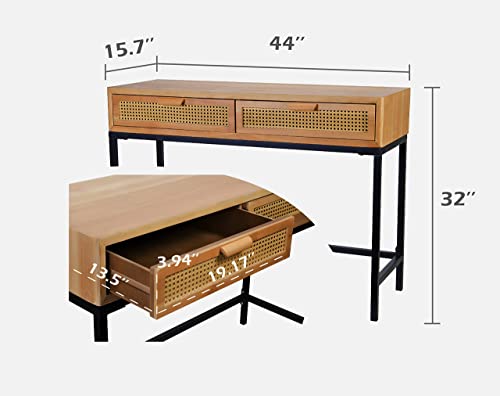 ✅QUALITY MATERIAL – Featuring top quality MDF pine wood table top with organic neutral finish and matte metal frame, this table is sturdy enough to serve as a working desk to host printers or a vanity table within the bedroom.