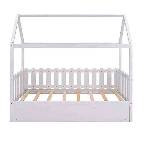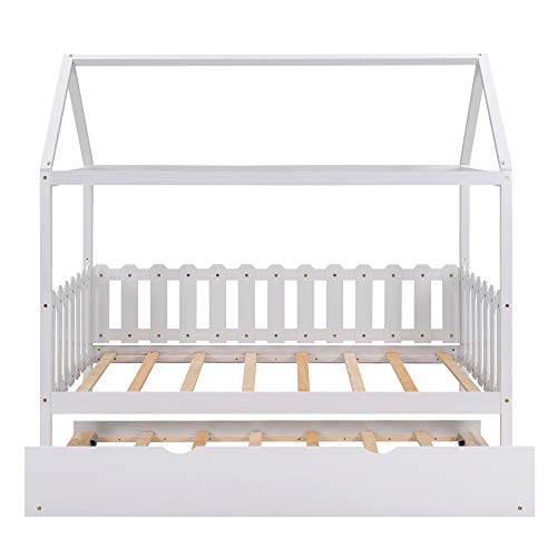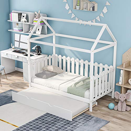 [Twin Bed with Trundle] -Our twin house bed with trundle is the perfect piece to accommodate guests or for family with several kids. It is easy to create that extra sleep space when needed with the pull-out trundle bed.