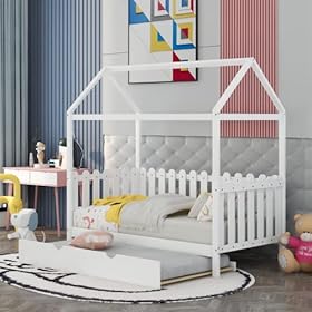 [House Bed Frame Twin Size] – The twin size house bed is constructed with a sturdy pinewood frame that can enhance stability and durability.