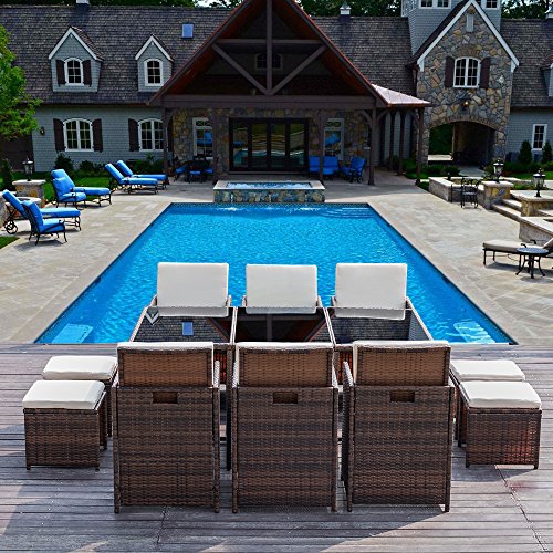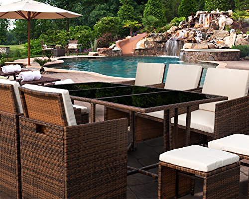 -The design of 11 pieces patio dining sets will go well with any garden or backyard arrangement and landscaping. Fashionable rattan and modern design complements any space and the durable construction will make this piece a favorite of yours for summers to come, creating a beautiful and luxurious outdoor living space for you and your guests