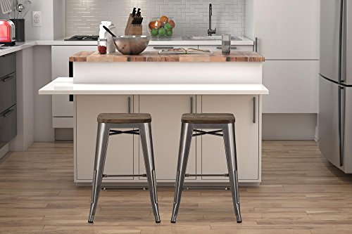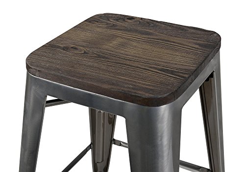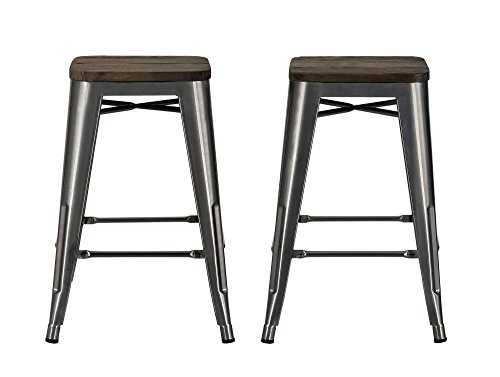 DHP Fusion Metal Backless 24″ Counter Stool with Wood Seat, Distressed Metal Finish for Industrial Appeal, Set of two, Antique Gun Metal