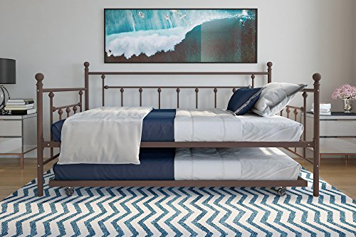 Do you wish to have extra sleeping space? Do your kids love sleepovers? Then this Manila daybed with a handy pull-out trundle is perfect for your home. The linear Victorian design with rounded finials gives any room a spark of style that’s both up to date and timeless. Choose between a white, bronze, gold or millennial pink finish to fit your décor and add a touch of sophistication to any room. The simple yet elegant metal frame is sturdy and comes with metal slats for extra enhance and ensures air moves freely around your mattress to keep it fresh for years yet to come. Your kids can read, play and take a seat back by day, then sleep soundly at the daybed when it’s time for lights out. For overnight guests, just pull out the trundle, which is mounted on four easy-drift casters. All you wish to have are some pillows and throw blankets for a pop of color, and you’re all set!
