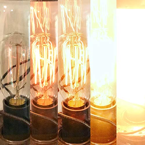 40 watt dimmable Edsion style Bulb as seen in pictures, will take up to 100 watt Candelabra base. This lamp will compliment any rustic them you have well. Manufactured by Muskoka Way of life Products to deliver you true quality.