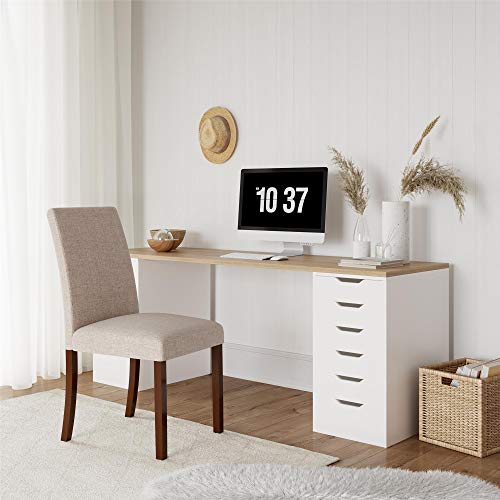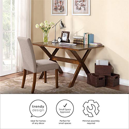 Give your kitchen, dining room, or living room a quick makeover with the set of 2 Dorel Living Linen Upholstered Parsons Chairs. This traditional set of chairs easily complements and enhanced any kitchen, dining or living room décor. Designed with a sturdy construction that guarantees long-lasting fortify and durability, these linen chairs’ seat back, seat front, and chair seat are fully upholstered in a beautiful taupe color with a view to blend in rooms of any style. These Dorel Living Parsons Chairs not only make the perfect dining room chair, but they are able to also easily double as accent chairs for your living room, home office and bedroom. Overlook trying to determine how it is possible for you to to host all of your friends and family for Thanksgiving dinner; all you want are these beautiful chairs to make your life easier. Use as versatile stand-alone pieces for additional seating options in your house, or combine it with the Dorel Living Dark Pine Trestle Table for a complete, matching dining set solution.