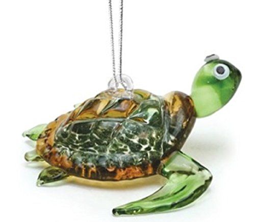 Glass Green Baby Sea Turtle Hanging Ornament Approximately 1.75 Inches Long Tropical Sealife Decor