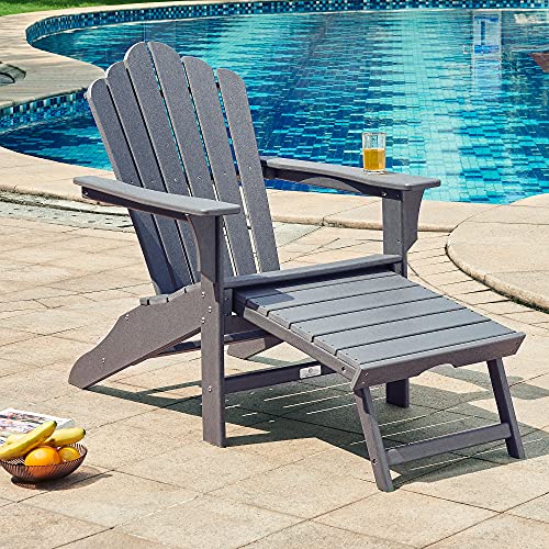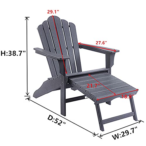 Comfortable ExperienceLoosen up outdoor in this stylish Adirondack chair with ottoman.You’ll be able to place the chair in the garden or on your Outside patio to enjoy great books and a cup of coffee. | Outside PartnerWhether set in the sand on a beach, gathered around a fire in the backyard, or soaking up the sun by the swimming pool, this classic patio chair is an excellent choice for your Outside leisure and comfortable life. | High-Quality MaterialsMade of recycled high density polyethylene (HDPE) material so as to not rot, splinter, chip, peel or crack. |