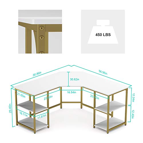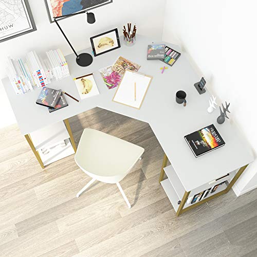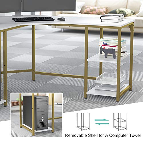 Enrich Use Space: This large L shaped computer desk features two 2-tier open shelves for storage, providing plenty of surface space for your monitors, laptops or maybe other office supplies and organization. If you need the space for a large computer chassis, feel free to remove the middle shelf for some extra room.