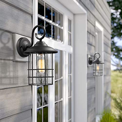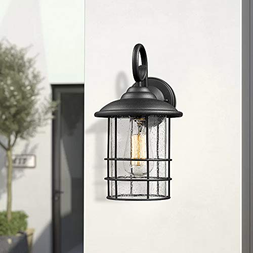 Emliviar 1-Light Outdoor Wall Sconce, Outside Porch Light in Black Finish with Clear Seeded Glass, 1803CW2