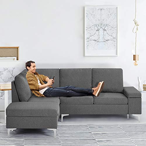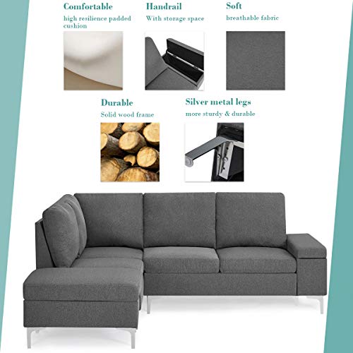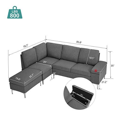 Esright Sectional Sofa with Ottoman, Convertible Sectional Sofa with Armrest Storage, Sectional Sofa Corner Couches for…