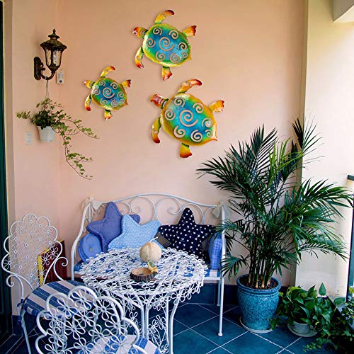 Set of 3 metal sea turtles,manufactured from metallic painted metal,hollow-carved design,unique colors and very good craftsmanship,looks so life-like.