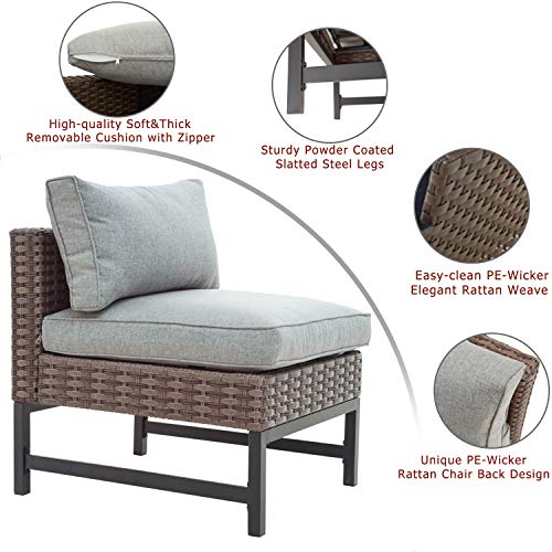 【Modern and Comfort Design】Festival Depot Dining Outdoor Patio Bistro Furniture Armless chair has two soft&deep cushions.Unique PE Wicker rattan make you feel cooler outdoorsand brings you great comfort.Black neutral frame and Polyester cushions have anti-UV function.This timeless piece provides lasting comfort and style.its modern and stylish design and can match perfectly with any decor theme.