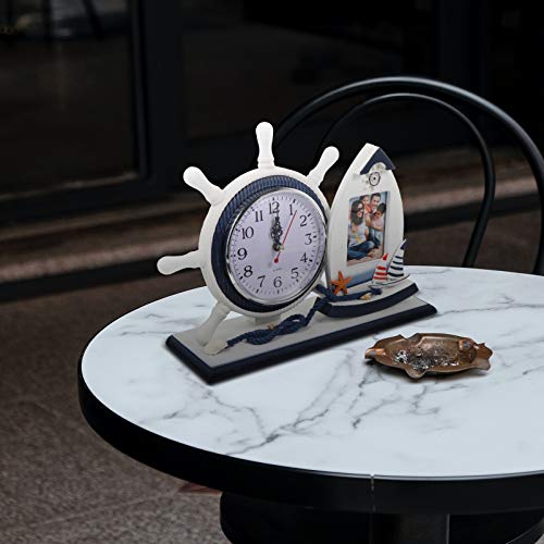 Wooden Ship Wheel Clock Silent Desk Clock Helm Wooden Clocks Sailboat Steering Wheel Shelf Clocks Home Decor Clock Ornament