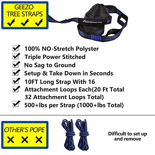 GEEZO Double Camping Hammock, Lightweight Portable Parachute (2 Tree Straps 16 LOOPS/10 FT Included) 500lbs Capacity…