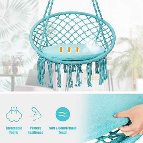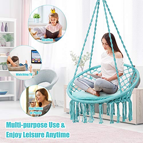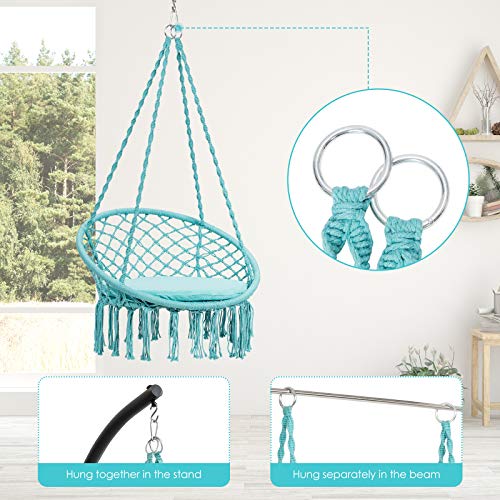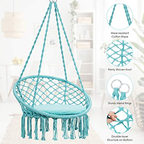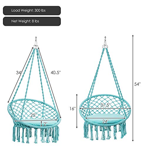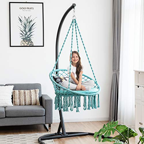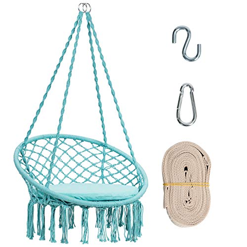 Cozy Chair with Soft Cushion: Enjoy the comfortable touch and leisure time in this hammock chair. The chair features an extra-large cushion with the diameter of 25”, aiming to offer the spacious and wide area for full relaxation. The padded cushion also delivers a soft touch for the comfortable and the best sitting experience.