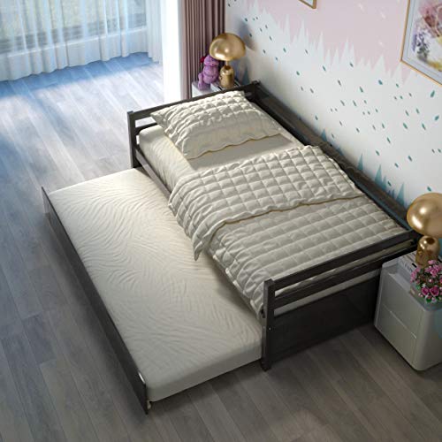 【Multifunctional Design of Daybed】: This piece of furniture is more than just a bed. It can be used as a sofa, which is cozy to sit down on it to read or play games. What’s more, it is also imaginable to pull out the below trundle bed and turn it into 2 twin size beds for sleeping. This versatile design saves time and increases space utilization.