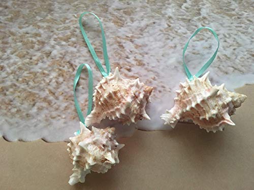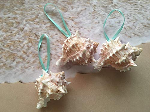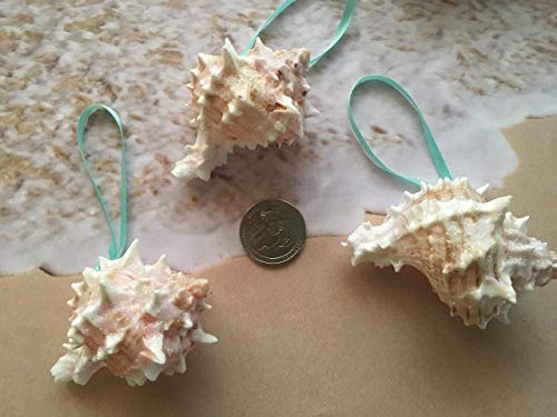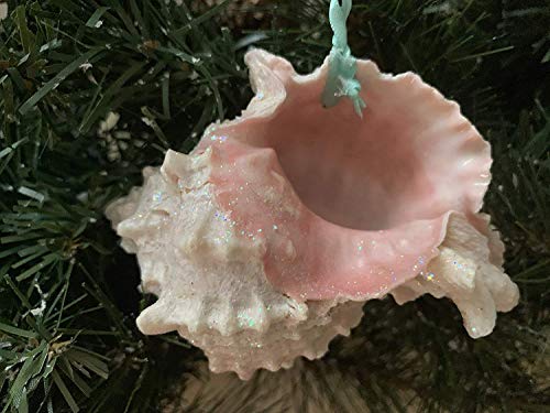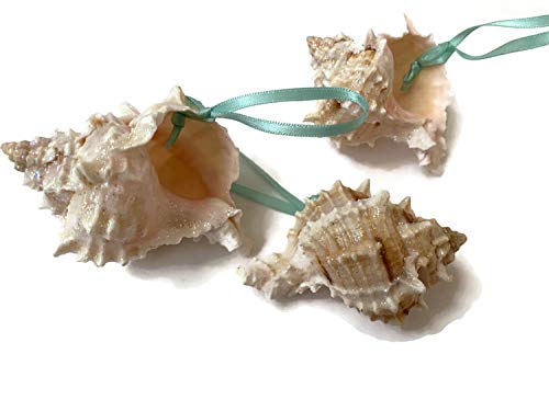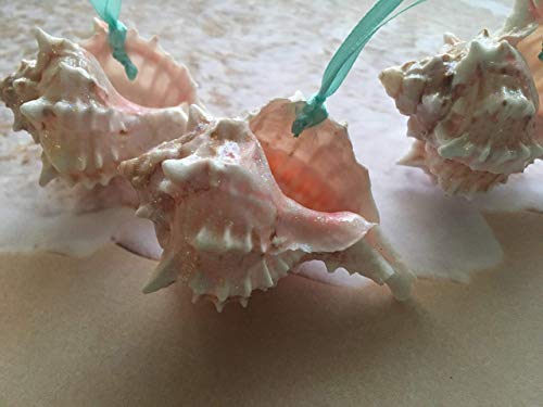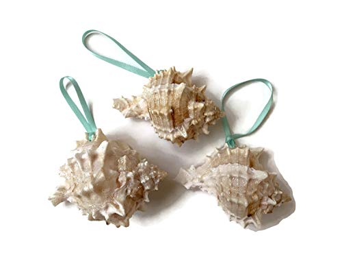 Glittered Pink Murex Seashell Ornaments with Turquoise Ribbon, 3