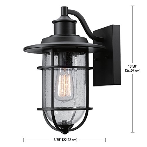 Perfect to hang on my own or as a pair, Globe Electric’s Turner 1-Light Out of doors Wall Sconce provides a warm welcoming light. The seeded glass shade creates a wonderful shadow that provides an inviting light for your entryway. Add this by your garage door, back entryway or anywhere you wish to have light outdoor your home. The black finish and clear shade are a perfect combination of classic and up to date and will blend well with any decor. Add a compatible dimmer switch and bulb to create the easiest outdoor atmosphere. Take a look at Globe Electric’s stunning array of designer vintage bulbs to make your Turner 1-Light Wall Sconce in point of fact unique. Includes all mounting hardware for quick and easy installation and requires one medium based 60W bulb (sold one at a time).