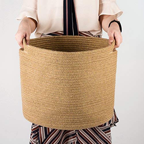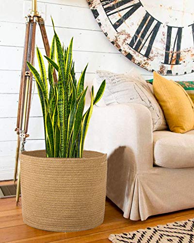 Goodpick woven plant basket made of cotton and jute for blankets, towels, clothes, plants, living room, bathroom, bedroom