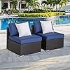 【Cozy and Humanized Design】Comes with thick padded cushions, this 4-piece patio furniture set will provide you an unusual comfort experience. And with its smooth zipper, the cover of the cushion is removable and washable. Designed for ultra comfy, this patio furniture set has an ergonomic design of wide armrests and curved backrest.