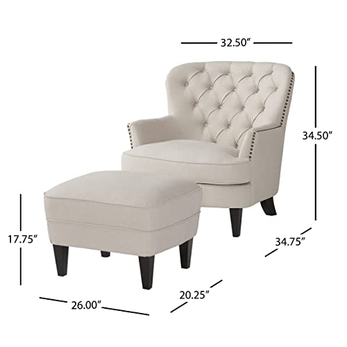 This club chair ottoman set is ideal for any room in your home. With a perfectly designed ottoman to match this club chair, you will be lounging in style. The studded outline of the chair adds the perfect amount of flair to compliment the tufted seat back and plush cushions. Both the club chair and the ottoman have cushions to promote the maximum amount of comfort while in use. This set is great for any room, especially your living room.