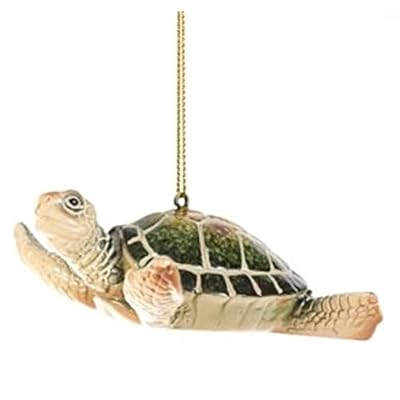 Sea Turtle Christmas Ornament, Nautical Ocean Decorations, Coastal Beach Tree Decor (Polystone Green) by Christmas…