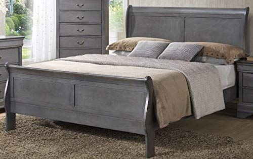 Material: Solid Wood Bed Design: Classic Louis Philippe Styling Color: Grey