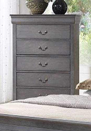 Include: Queen Size Bed, Dresser, Mirror,Chest, Nightstand English Dovetail Drawer Construction, Center Metal Drawer Glides, Metal Hardware Material: Solid Wood Bed Design: Classic Louis Philippe Styling Color: Grey Dresser: 58X18X35″H Mirror: 36X4X36″H Night tstand: 22X16X25″H Chest: 30X18X48″H Queen Size Bed: 63″WX85.5″LX47″H Only Bed and mirror need minor assemble