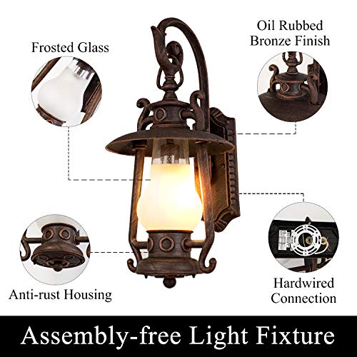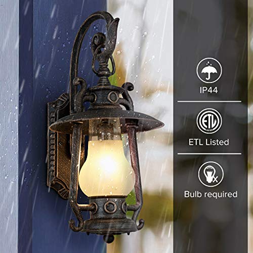 RUSTIC DESIGN – The lantern style wall lamp is of old western style. The rustic oil lantern look makes houses of old-fashion feelings. Thanks to it compatibility with photocell sensor / solar panel / PIR sensor, it could be given more possibilities. Please note that these elements were not included.