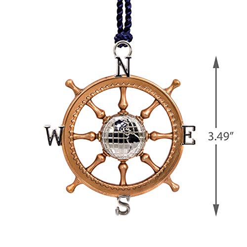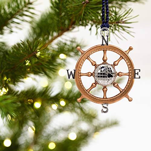 Encourage them to take the scenic route to their next adventure with this metal compass Christmas tree ornament. Nautical-blue directional letters decorate the brass-colour ship’s wheel accented with a silver globe. Makes a thoughtful graduation or retirement gift or for someone embracing a new phase of life.
