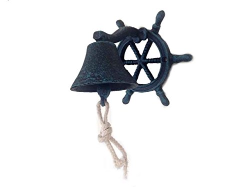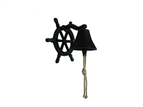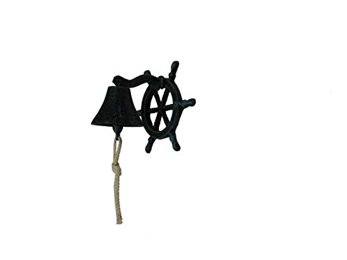 This beautiful sea worn blue cast iron hanging ship wheel bell 7″ is a striking nautical decor addition to any room. Taking into account easy decorative mounting, this fully functional cast iron bell is complete with it is rustic vintage appearance. Display this rustic hanging bell so as to add a nautical theme to any room or space and show individuals who seek advice from our home your Affinity for the nautical Sea-Faring way of life. —-Each and every Bell’s length is measured from the highest point of its hanger to the lower lip of the bell, even as the width is the diameter of the flared bell opening.–Note: wall mounting hardware not included.