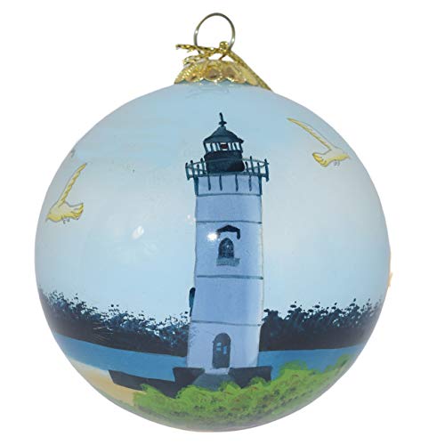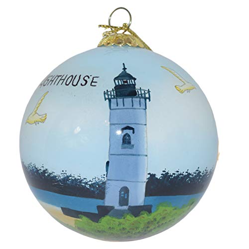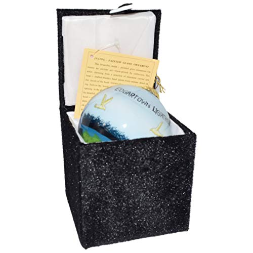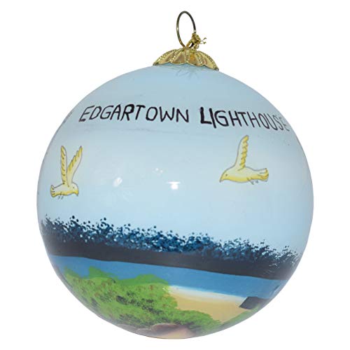 Edgartown Lighthouse like you’ve never seen it before. This beautiful, reverse-painted glass ornament shown in full 360 degrees. It continues an ancient art-form prized by collectors. The artists choosing from a selection of miniature curved and bent-shafted brushes, painstakingly hand paints each minute detail on the inside of the ornament. The craft requires the artists to time and again insert the brush through the small opening in the sphere; first to outline the design, and then to detail the colors separately. All the process for Each and every ornament requires up to two days. No two pieces are identical, making this inside-painted glass ornament a keepsake to be treasured from generation to generation.