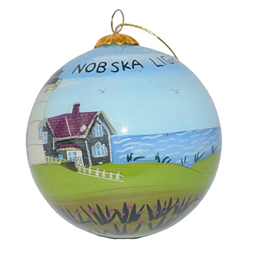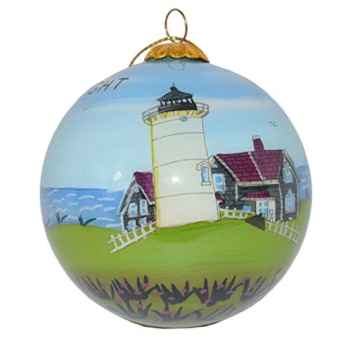 Nobska Light like you’ve never seen them before. This beautiful, reverse-painted glass ornament shown in full 360 degrees. It continues an ancient art-form prized by collectors. The artists choosing from a selection of miniature curved and bent-shafted brushes, painstakingly hand paints each and every minute detail on the inside of the ornament. The craft requires the artists to again and again insert the brush through the small opening in the sphere; first to outline the design, and then to detail the colors one after the other. All of the process for Every ornament requires up to two days. No two pieces are identical, making this inside-painted glass ornament a keepsake to be treasured from generation to generation.