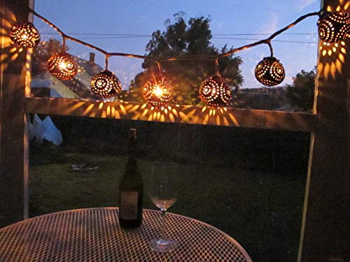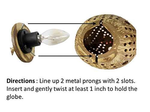 COCONUT SHELL NIGHT LIGHTS USE 110/220V POWER and 7 watt bulbs. Small bulbs are included. Approxmintely 56″ total length strand, shell globes approximately 4″ wide. SHIPS FAST from USA!