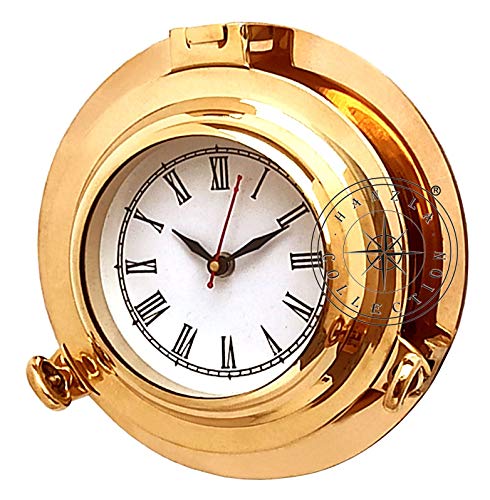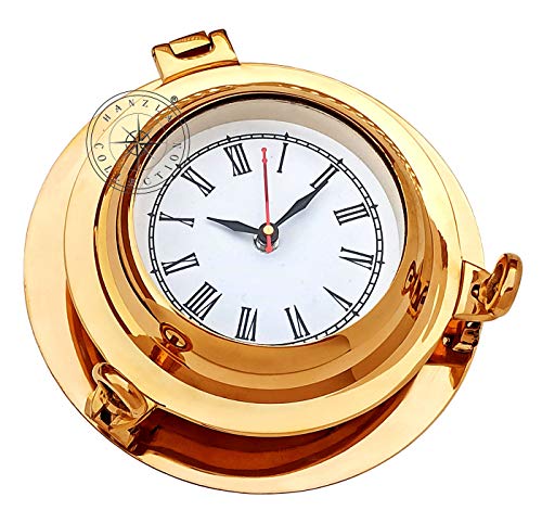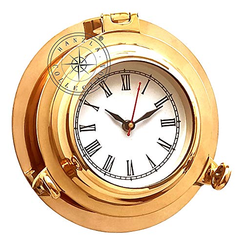 WELCOME TO THE STORE OF HANZLA COLLECTION – Hanzla Collection Nautical Boat Porthole Time’s Clock Maritime Polished Brass Ship’s Decor – Description – Work from Battery / Cell – Subject matter : Brass & Glass – Finish : Shiny Brass – Weight : 2 kg Approx – Clock Face : 4.75 Inches, 12 cm Approx – Overall Size : 9 x 9 x 2.7 Inches, 22.8 x 22.8 x 6.8 cm Approx – Look Photos For Actual Image of Product. All Work is Home made. It is a Reproduction Item, No longer Sold as Antique. Excellent Piece of Collection. Best possible For Gift. Please Talk over with Our Store & Check More Beautiful Items.