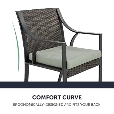 【Ergonomic Design】This outside patio dining set features a modern, ergonomic design. Each seat has wide, comfortable armrests and seatbacks that arch perfectly to meet the contours of your body. Sturdy steel frames are complemented by comfy rattan that has just the correct amount of give. Enjoy an ideal outside dining experience.