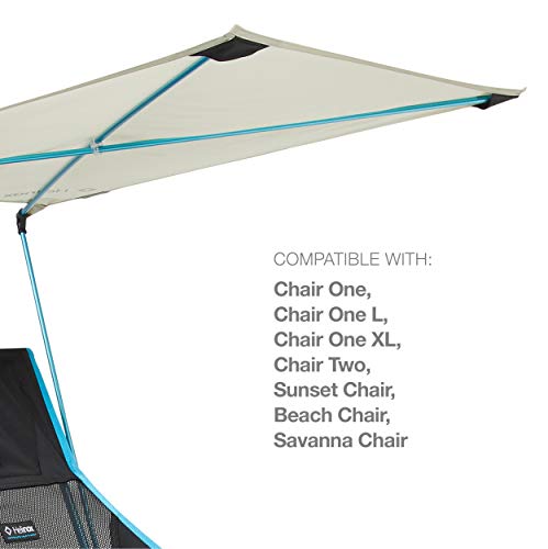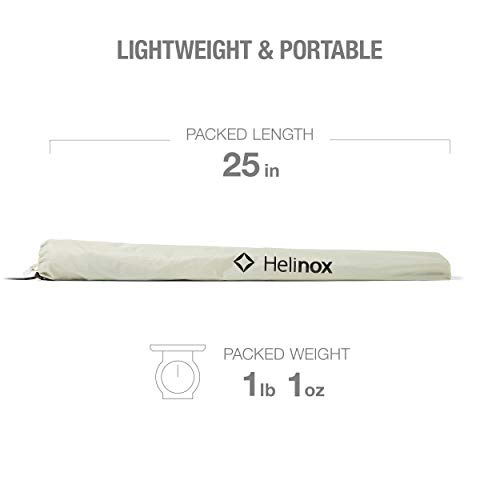 More coverage than a hat, easier to use than an umbrella, the lightweight and SPF 50+ Helinox Personal Shade Canopy attach to most Helinox chairs for all-day sun protection at the beach, campsite, music festival, or backyard. Strong, light, and built for years of use, its frame is made out of proprietary DAC aluminium alloy and has a light but durable nylon ripstop polyester canopy that blocks the sun and resists light rain and wind. Easy to set up, it comes with adapters so it can clip to virtually any Helinox chair (included adapters for the Helinox Chair One Original, Chair One Large, Chair Two, Chair One XL, Sunset Chair, Beach Chair, or Savanna Chair), and is designed to tilt so the canopy provides continuous shade as the sun moves. The efficient rectangular design has a coverage area of 33.5 x 28 inches, and the 29.5-inch pole height creates various headroom. Weighing just 1.1 pounds, the Personal Shade packs to 24.5 x 1.5 inches in the included stuff sack.