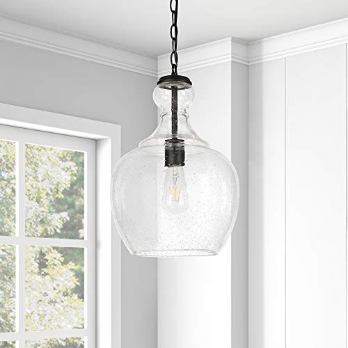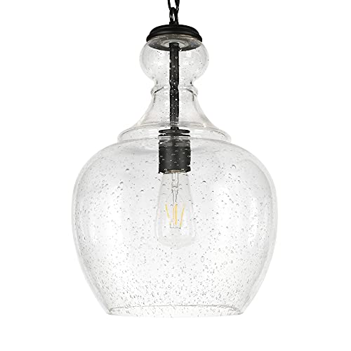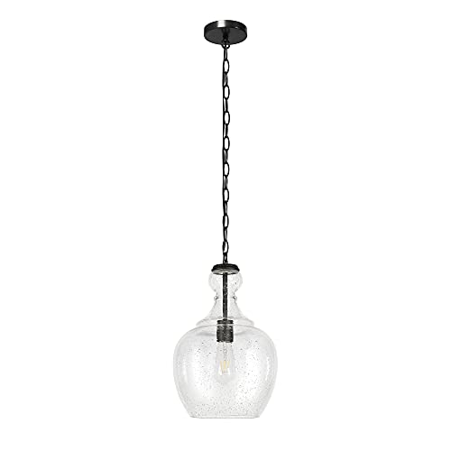 Verona 11″ Wide Pendant with Glass Shade in Blackened Bronze/Seeded