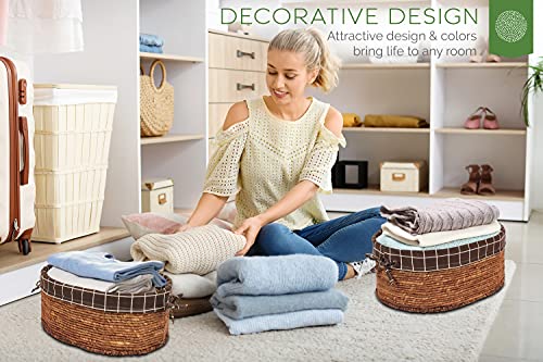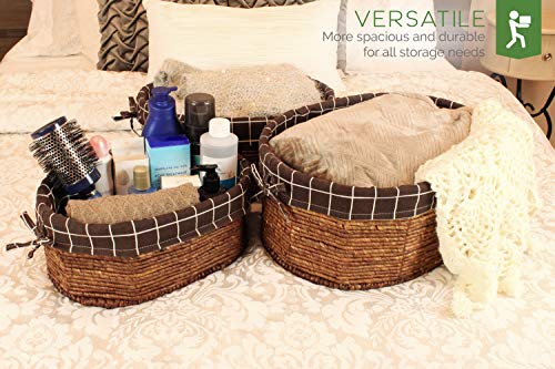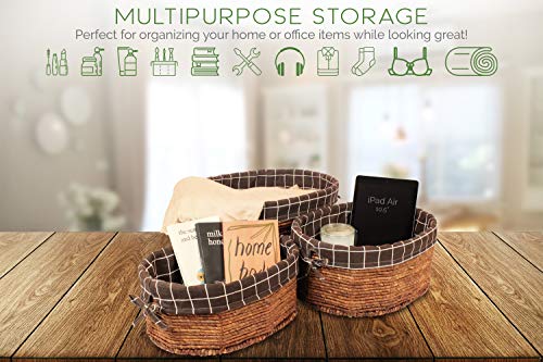 ✅ [NATURAL HOME DECOR] Decorative storage boxes for any room: These neutral in color, oval organizer baskets fit in your decorating schemes and complement any home decor. Invest in a natural rustic decorative basket set for bedroom, nursery, kitchen, living room, bathroom organization or pantry baskets.