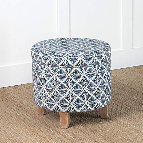 STORAGE OTTOMAN: Created with premium soft and durable woven fabric our Round Ottoman with Storage offers a timeless style | Perfectly completed with tapered solid wood flared legs